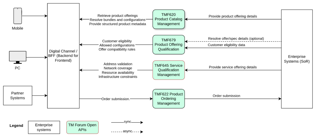 TMF620 often acts as an API facade over legacy catalog platforms.